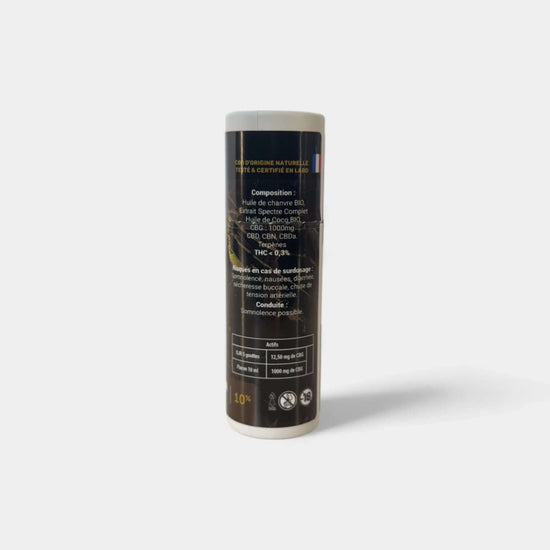 Huile de CBG 10% à spectre complet naturel contenant l'ensemble de tous les autres cannabinoides de la plante de cannabis.